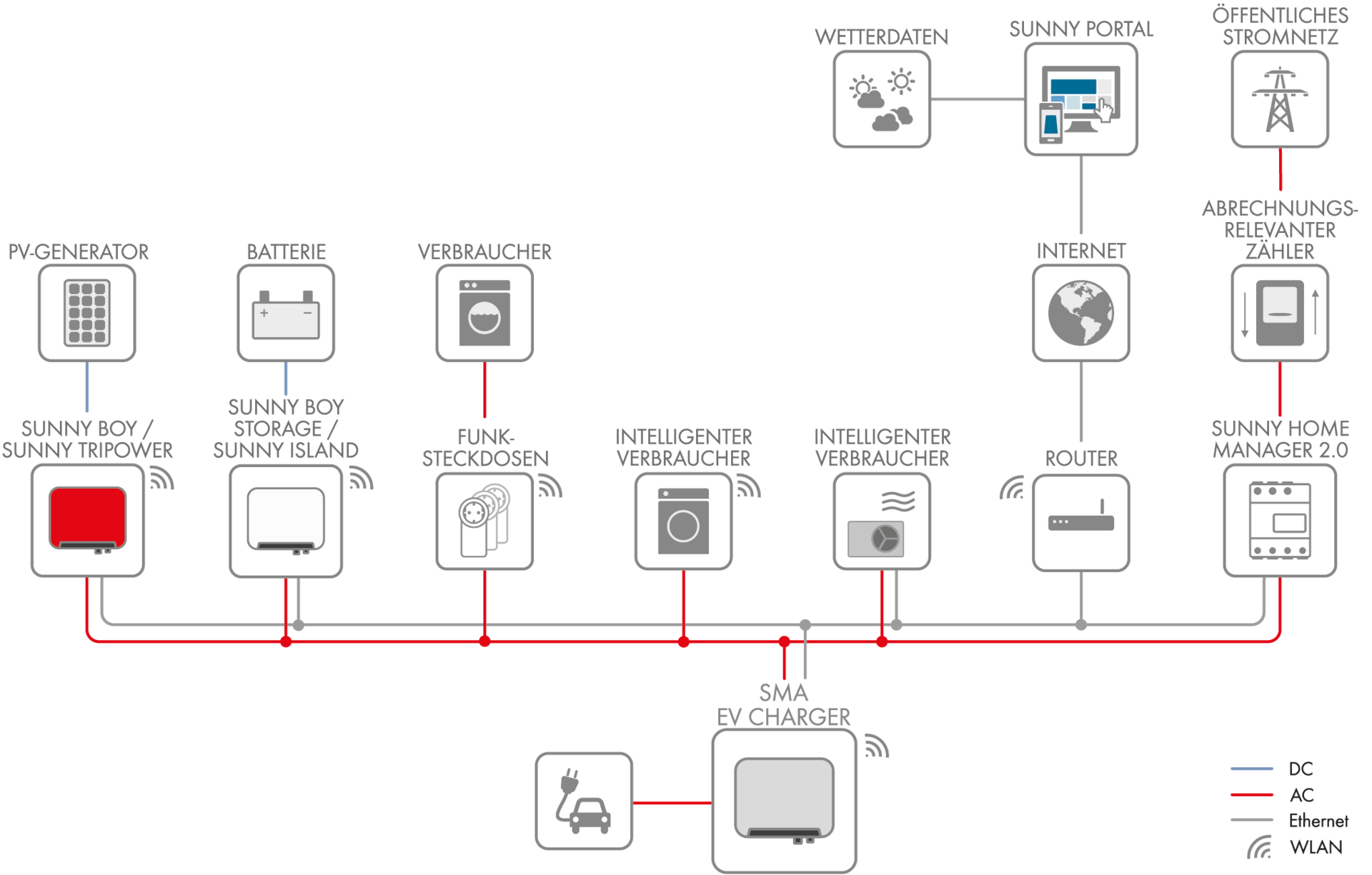 In Kombination mit dem Sunny Home Manager 2.0 laden Anwender ihr Elektrofahrzeug bevorzugt mit Solarstrom und besonders schnell, wenn es darauf ankommt. Die Bedienung erfolgt einfach per Drehschalter am Gerät oder via SMA Energy App. Die Boost-Funktion ermöglicht fast doppelt so schnelles Laden im Vergleich zu herkömmlichen Ladestationen. Auch kleine Solarleistungen lassen sich durch automatische Umschaltung von ein- und dreiphasigem Ladebetrieb maximal ausnutzen. Das intelligente System berücksichtigt dabei stets alle Verbraucher und vermeidet eine Überlastung des Hausanschlusses.