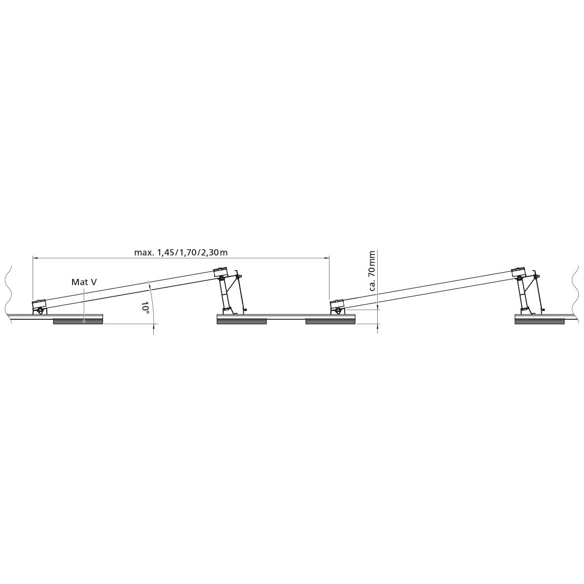 - Kurze Montageschienen mit integrierter Ballastaufnahme