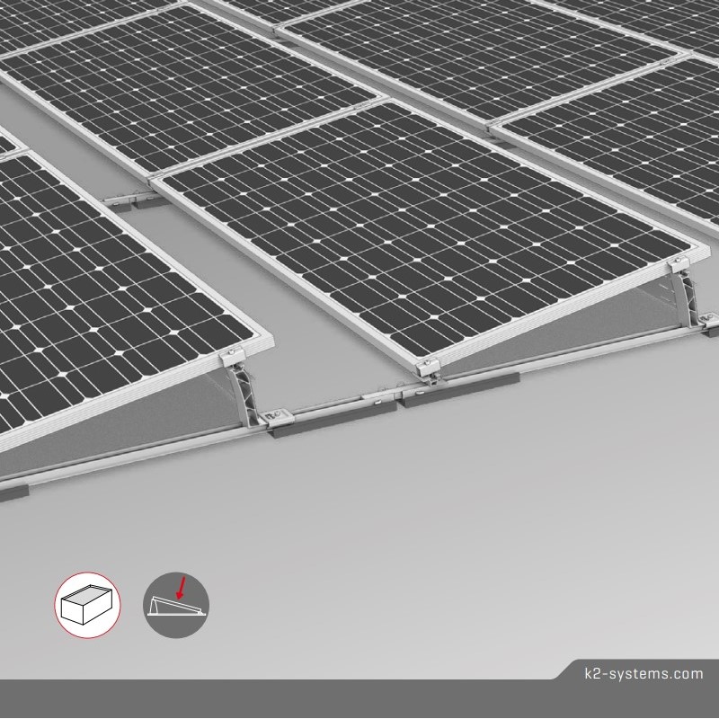 K2 Systems S-Dome 6.10 - neues Aufständerungssystem für Flachdachanlagen (10 Grad Modulneigung, Aufständerung Süd), schnellere Installation durch vormontierte Komponenten