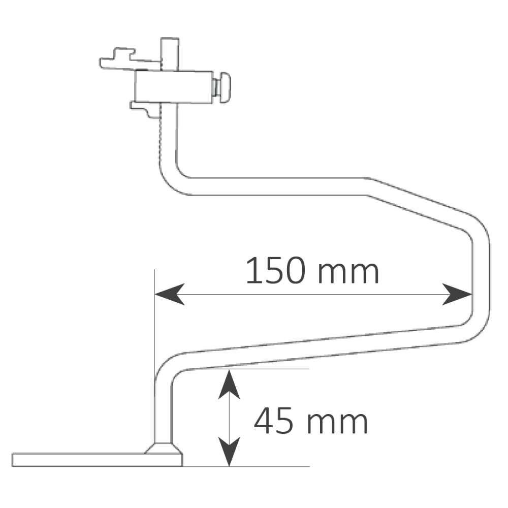 - Schiene in der Höhe verstellbar durch vormontierte Klemmkombination (für vertikale Schieneninstallation mit optional erhältlicher Klemmkombination vertikal, Art.-Nr. 11105-05 austauschen)