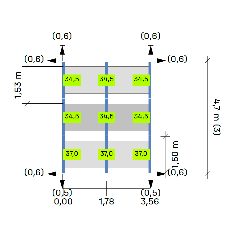 Anordnung: 3 Reihen á 2 Module