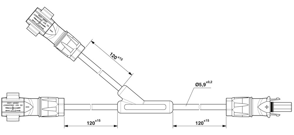 Photovoltaik-Y-Verteiler, Nennstrom: 40 A, Farbe: schwarz, konfektioniert mit SUNCLIX - 1 x Buchse (plus) - 2 x Stift (minus); Länge des Einzelkabels 0,12 m
