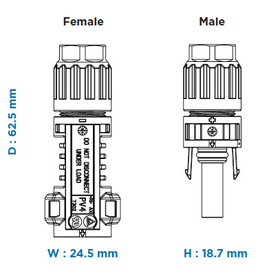 - Gehäuse inklusive Crimpkontakt für 4,0 und 6,0mm² Solarkabel