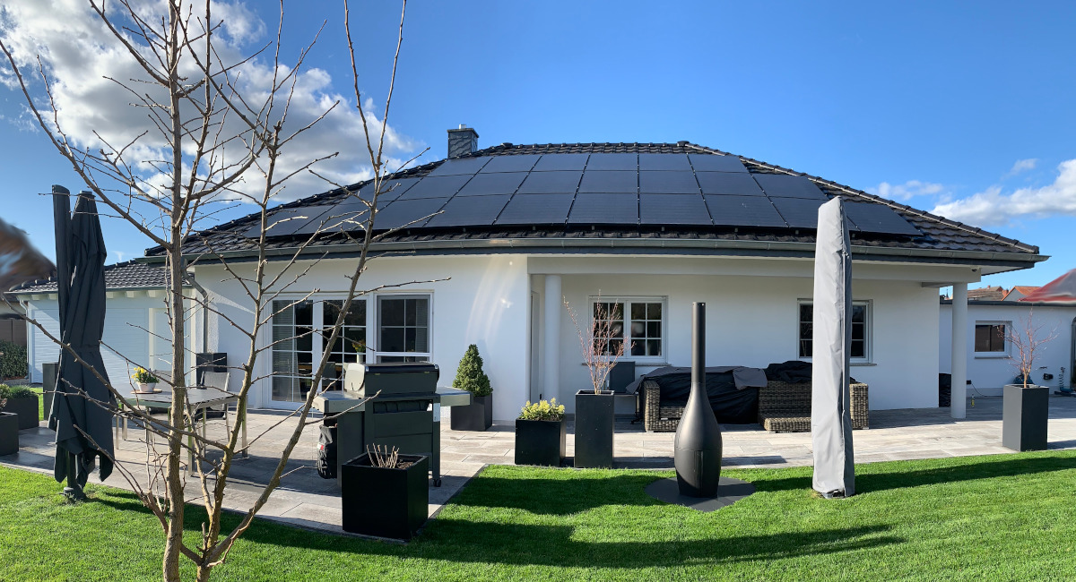 Die Eigenverbrauchsanlage wurde auf einem Ost-West-Dach errichtet. Durch die Belegung beider Dachseiten hat der Kunde den Vorteil, dass die Anlage früher und länger Solarstrom produziert und sehr gut zu seinem Lastprofil passt. Der Strombezug und die damit verbundenen Kosten werden zwischen 30 und 60%, je nach Nutzerverhalten und Strompreisentwicklung, sinken.