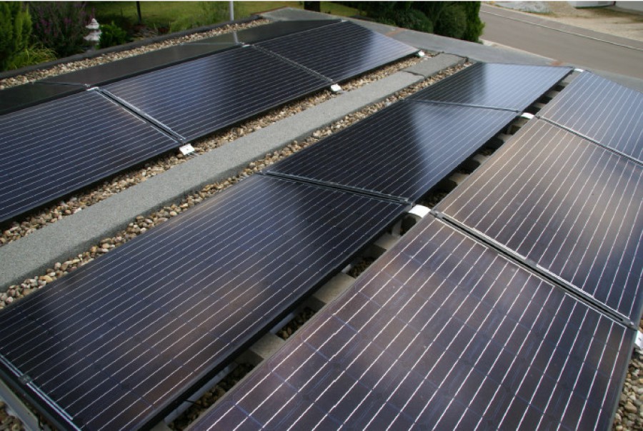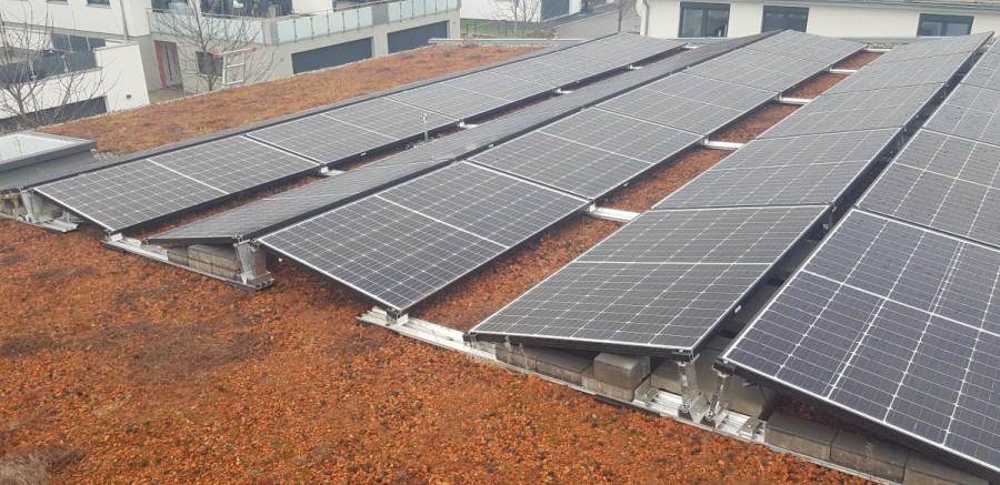 Die Ost-West-Aufständerung des Montagesystem passt sehr gut als Eigenverbrauchsanlage,