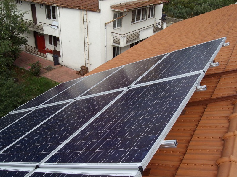 Netzgekoppelte Photovoltaikanlage im Eigenverbrauch auf einem Kirchendach im Rumänien. Der Kirchengemeinde hat hoche Stromkosten, da die Kirche mit elektrischen Heizlüftern beheizt wird. Das Ziel war es güstigen Solartsrom zu produzieren, um die Stromkosten zu senken.