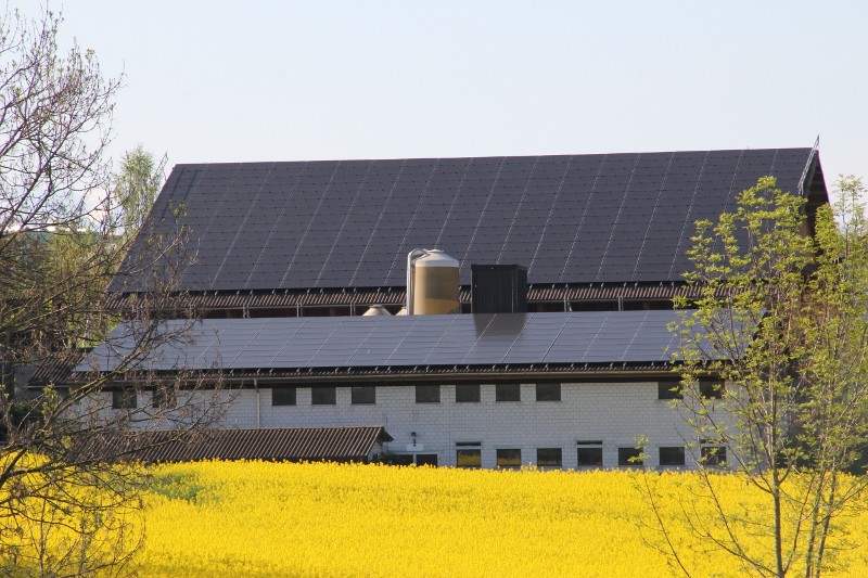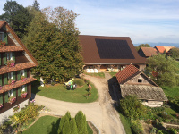 Nach dem im letzten Jahr im ersten Bauabschnitt eine PV-Anlage mit 82 kWp in Betrieb genommen worden ist, hat man sich nach einem Jahr aufgrund der sehr guten Erfahrungen für die Erweiterung des Projektes entschieden. So wurden auf weiteren Dachflächen des landwirtschaftlichen Hofes eine Photovoltaikanlage mit 156 kWp errichtet. Durch den hohen Strombedarf ist es das Ziel eine möglichst hohe Autarkie mit Öko Strom zu erreichen. Aus Denkmalschutzgründen durften nur schwarze Module installiert werden. So passt sich der Öko Hof in eine perfekte Landschaft ein.