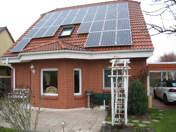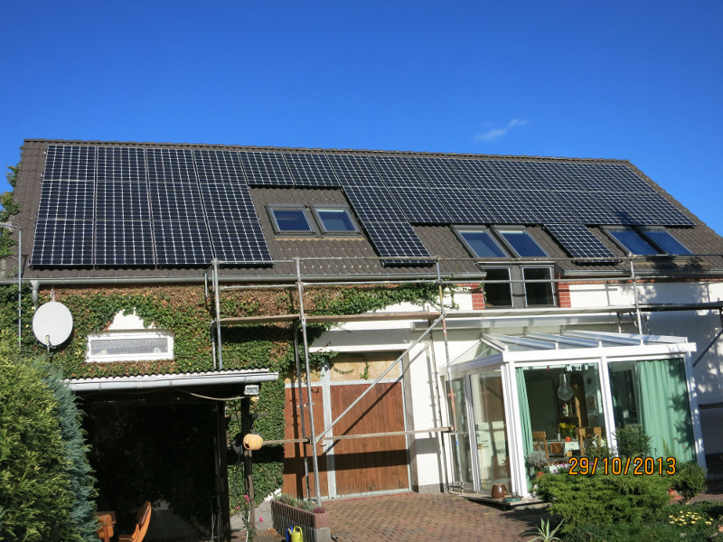 Die Photovoltaikanlage sollte einen großen Teil des Stromverbrauches am Tage decken. Die Teilverschattungen durch benachbarte Bäume, Satelitenschüssel und Hauswand galt es bei der Planung zu berücksichtigen. Hier ist SolarEdge mit Leistungoptimierer das richtige System um aus der gegeben Situation der größtmöglichen Ertrag zu erzielen. Jedes Modul wird quasi Autark durch einen eigenen MPPT-Tracker der im Leistungsoptimierer am Modul montiert wird gesteuert. Großer Vorteil ist die Überwachung der Anlage auf Modulebene und die Sicherheitsabschaltung im Brand- oder Wartungsfall.