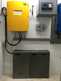Der Kunde hat sich nach 1 1/2 Jahren Betrieb der Photovoltaikanlage entschieden seine Autarkie mit einem SMA Smart Home Speichersystem zu erhöhen. Die Wahl des Speichers viel auf den LG Chem RESU 6.4EX Lithium-Ionen mit 6,4 kWh Bruttokapazität. Durch die beiden Erweiterungsmodule á 3,2 kWh steht nur bei einer Entladetiefe von 20% (DOD80%) eine nutzbare Kapazität von 10,24 kWh und 10.000 Ladezyklen zur Verfügung. Das reicht für eine Produktlebensdauer von ca. 10 Jahren.