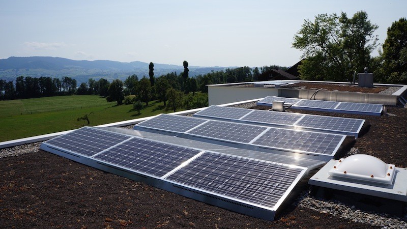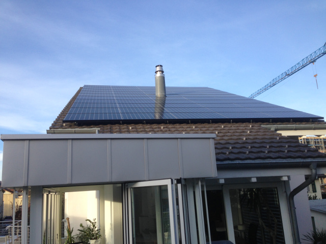 7,200 kWp - PV-Anlage LG Solar MonoX NeON 300 Watt auf einem Flachdach mit SolarEdge Leistungsoptimierer in CH-8712 Stäfa / Schweiz